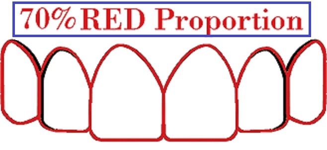 درصد نسبت RED با دندان های بسیار بلند. دندانپزشکان هنگام مشاهده دندان های با طول طبیعی، دندان های ثنایای مرکزی را با نسبت RED 70 درصد ترجیح دادند. لبخندهایی که نسبت عرض به ارتفاع 75% تا 78% ثنایای مرکزی را حفظ کرده باشند ترجیح داده می شوند.