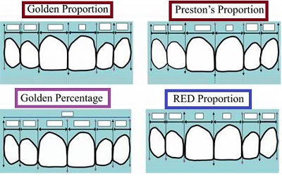نسبت دندان ها به طور قابل توجهی در دندان طبیعی متفاوت است. هیچ مطالعه ای یافته هایی را نشان نداد که از استفاده از یک فرمول ریاضی برای پیش بینی موفقیت زیبایی شناختی پشتیبانی کند.